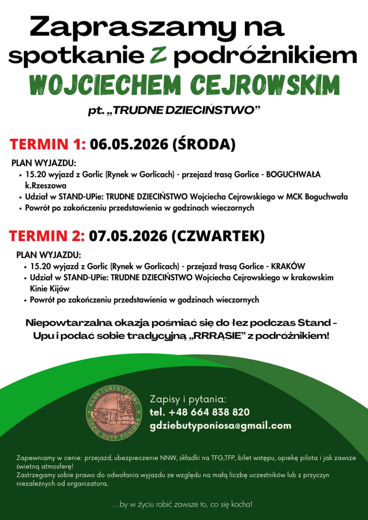 Zapisy przez formularz: https://gdziebutyponiosa.pl/biuro-zgloszenie-na-wycieczke/